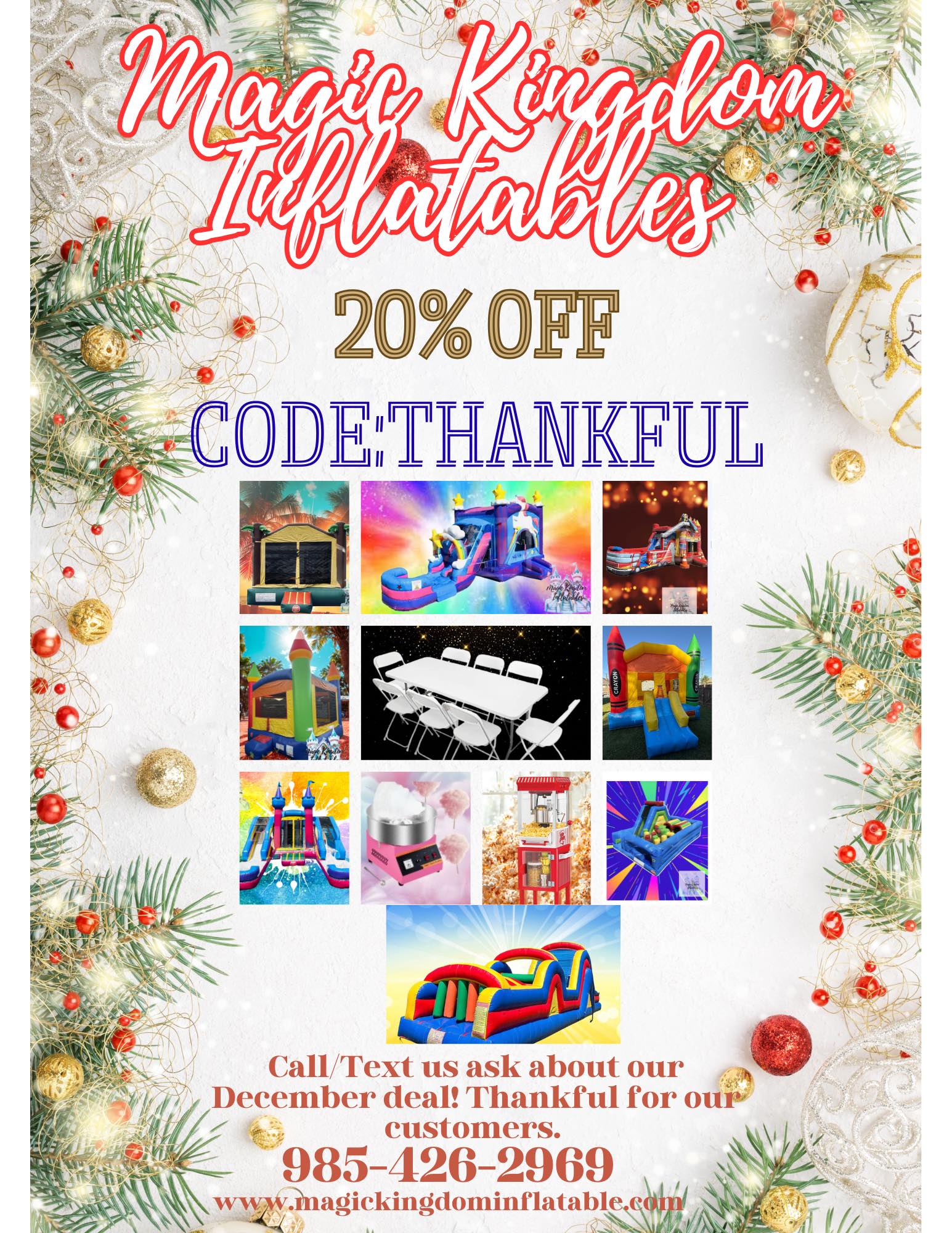 We are your local go-to for inflatable, bounce house, waterslides, Party Buses and party event rentals serving Houma -Thibodaux and surrounding areas.