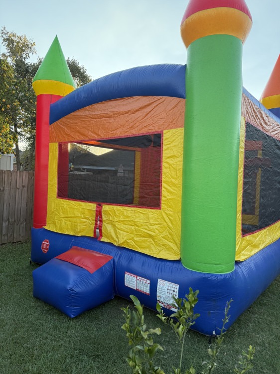 - OCCUPANCY: A maximum of 5-6 kids of equal size at one time for bounce houses, and 1 person at a time for slides is what most inflatable manufacturers recommend.